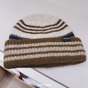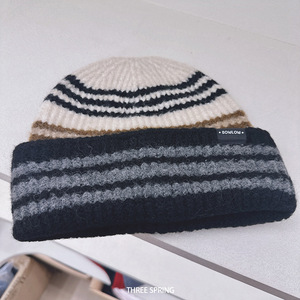 批发韩国2025年秋冬新款美拉德条纹大版针织帽大头围显脸小毛线帽