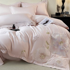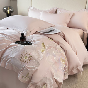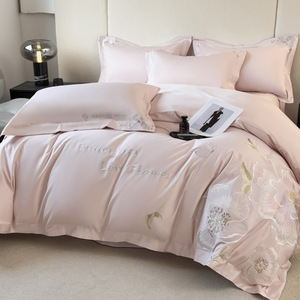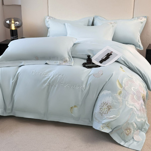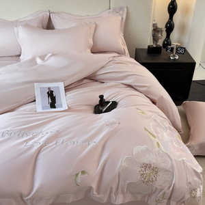 2025新款A类全棉纯棉长绒棉刺绣四件套简约棉套件高端母婴级床品