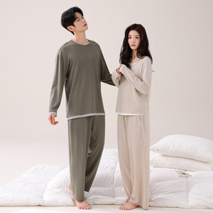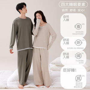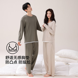 A类情侣睡衣莫代尔棉长袖韩版休闲带胸垫女士高档男式家居服套装