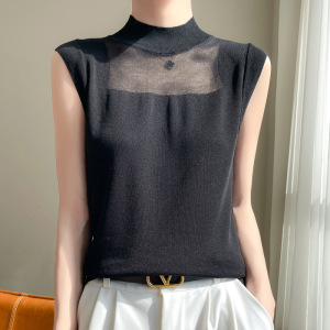 厂家批发2025早秋新款12针精纺羊毛半高领镂空针织打底衫女现货