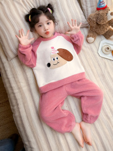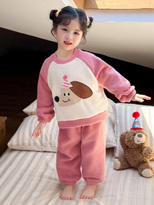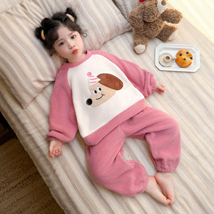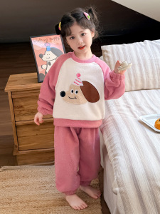 儿童睡衣套装秋冬季女童2025新款杨梅绒女孩宝宝保暖家居服两件套