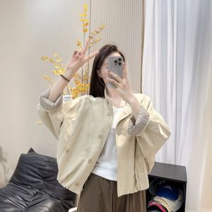 立领夹克休闲时尚外套2025新款宽松休闲内里条纹短款外套风衣上衣