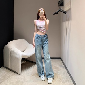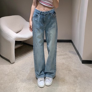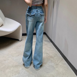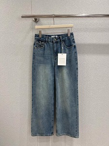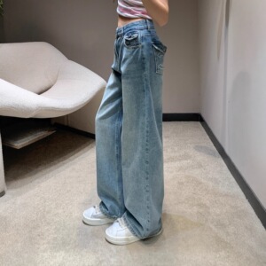 25秋冬C新款复古撞色字母刺绣logo翻盖休闲百搭直筒牛仔长裤中腰