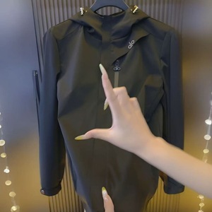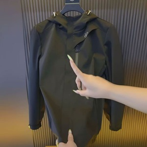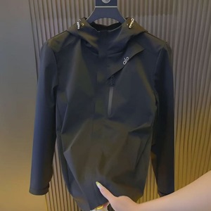 2025高品质新款男士连帽外套时尚简约黑色休闲防风百搭夹克上衣
