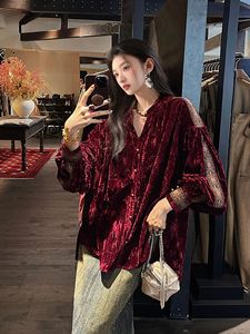 秋季国风新款抓皱烫金民族风丝绒衬衫新中式高定长袖上衣女 N9046
