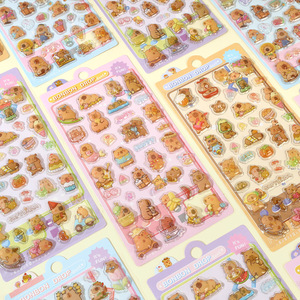 创意卡皮巴拉泡泡贴纸可爱3D女孩空心浮雕贴水豚手机壳立体装饰贴