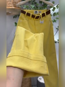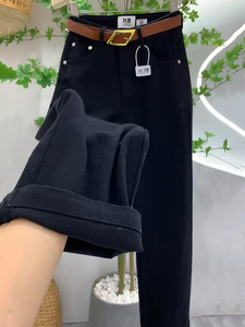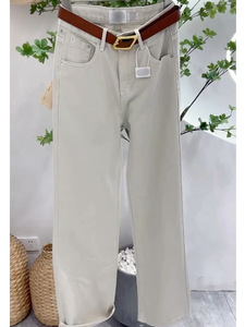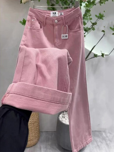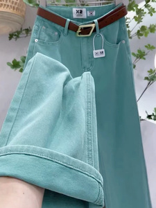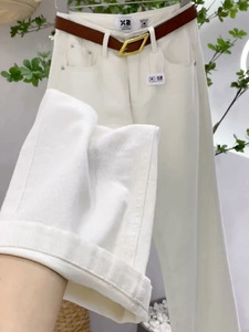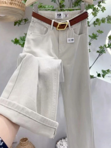 杏色直筒阔腿牛仔裤女2025早秋新款高腰宽松显瘦柔软浅色垂感长裤