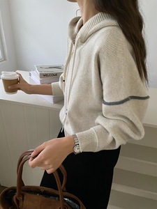 25秋款韩流清新少女感连帽拉链毛衣外套女宽松短款针织开衫ZEZ8