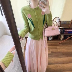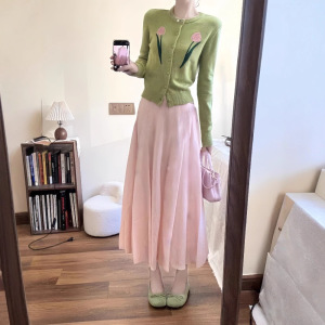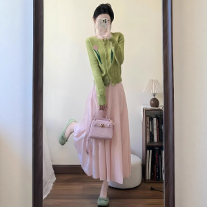 2025超火多胺巴一整套韩系减龄穿搭长袖针织毛衣开衫半身裙两件套