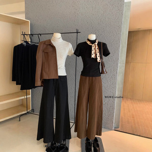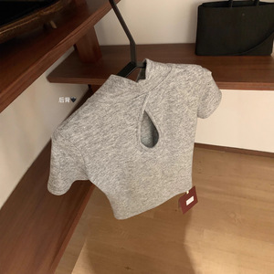 WGWE7357#小心机露背气质打底衫软糯细腻半高领针织衫短袖T恤