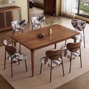 乌金木家用长方形新中式实木饭桌子现代简约小户型客厅餐桌椅组合