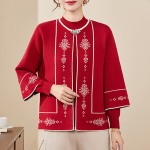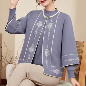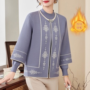 妈妈洋气针织两件套装中年女装秋冬装毛衣中老年时尚加绒加厚上衣