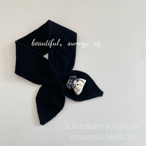 INS风冬季保暖氛围感毛线围巾儿童玩偶交叉针织围脖