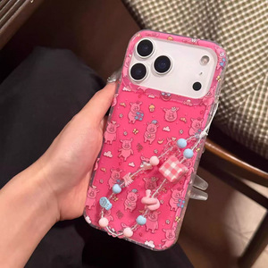 可爱玫粉色满屏甜品小粉猪链条适用iPhone17promax苹果16手机壳15