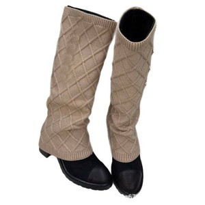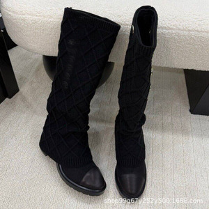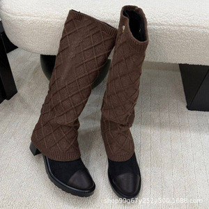 C辣妹25新款拼色格纹搭扣针织裤管靴粗跟袜子靴长靴女