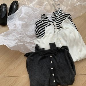 半开领早秋薄款针织衫女正肩打底衫慵懒松弛感轻熟小众不撞款上衣