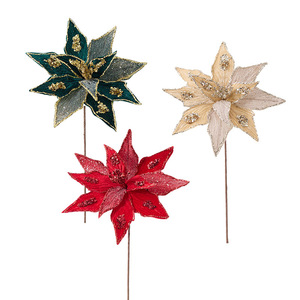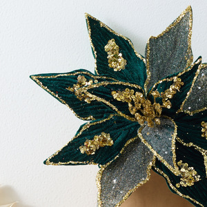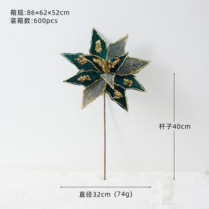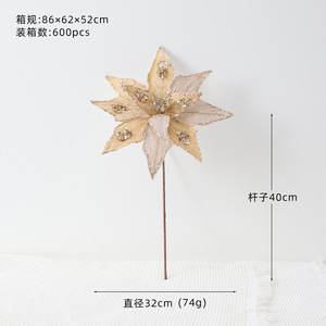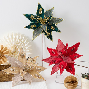 跨境新款32cm高档圣诞花重手工仿真花节日场景布置道具圣诞树装饰