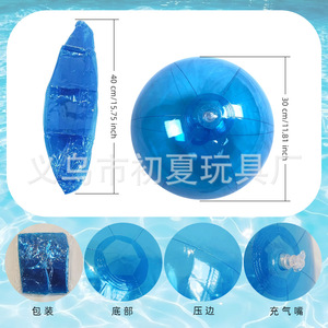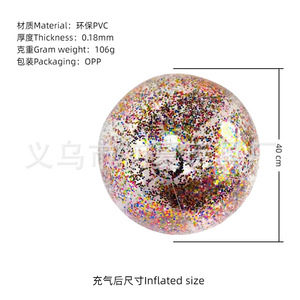 跨境充气沙滩球彩色PVC透明亮片球充气波点球泳池派对发光球批发
