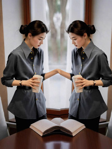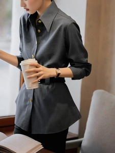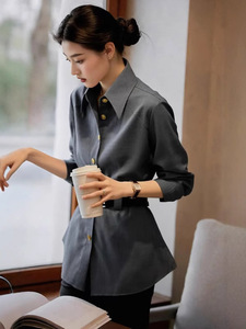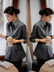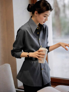 法式收腰显瘦上衣早秋季女装2025新款轻奢减龄洋气灰色长袖衬衫