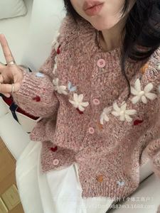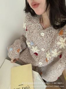 复古撞色条纹针织开衫韩系慵懒风绝美气质毛衣上衣外搭秋