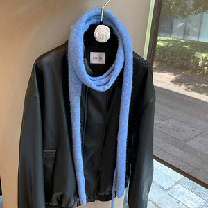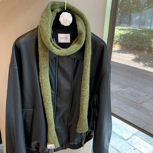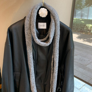 纯色双绳细窄羊毛长条围巾女小众设计韩版时尚氛围感针织法棍围脖