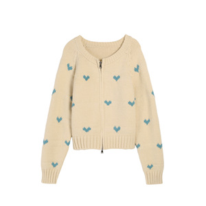 「GUIER」爱心刺绣毛衣开衫女春秋2025新款设计感双拉链针织上衣