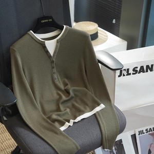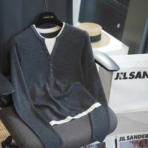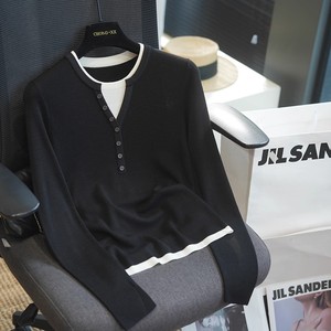 A15918 100精纺羊毛假两件弹力修身显瘦长袖针织衫女上衣秋季