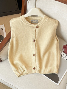 法式白色叠穿马甲开衫毛衣女早秋季显瘦宽松百搭针织背心坎肩上衣