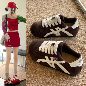 复古美拉德拼色板鞋女2025年春季新款平底休闲运动鞋阿甘鞋德训鞋