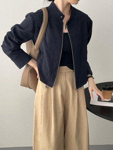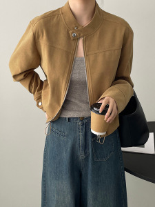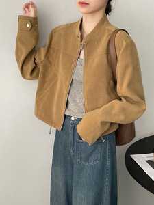 美式复古立领短款外套女秋冬小个子飞行夹克气质感上衣