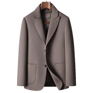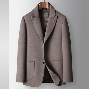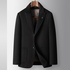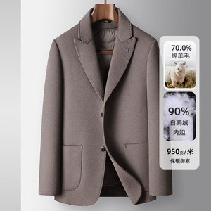 男式休闲西装秋冬戗驳领脱卸鹅绒内胆中青年高奢商务手工羊毛单西