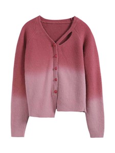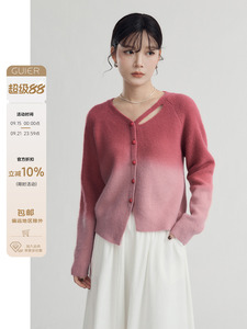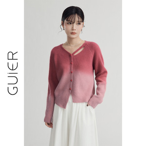 「GUIER」渐变针织衫毛衣女秋2025新款复古镂空不规则设计感上衣