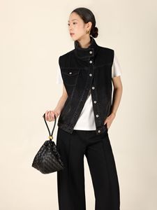 2025夏季爆款黑色不对称工装牛仔马甲不对称门襟设计外穿无袖上衣