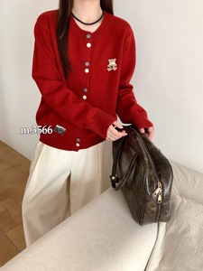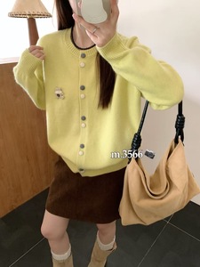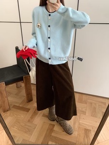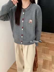 韩系秋季甜糯可爱减龄圆领刺绣针织衫宽松百搭长袖外套开衫ZBR