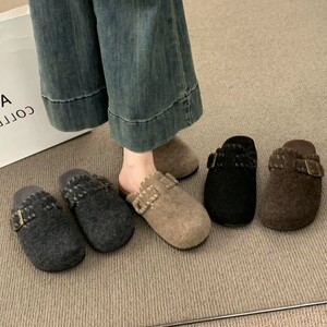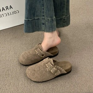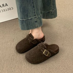 绒面厚底勃肯鞋2025新款秋冬外穿懒人外穿一脚蹬毛呢包头半拖鞋女