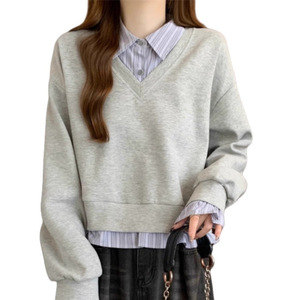 美式假两件短款卫衣女2025春秋大码胖mm宽松学院风显瘦爆款上衣潮