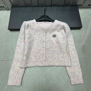 25年秋季新款华伦家字母彩点针织长袖单排扣开衫宽松百搭女毛衣