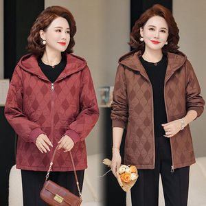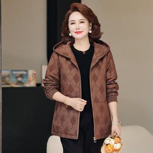 洋气妈妈春秋装宽松大码连帽夹克外套中老年女遮肚百搭休闲服上衣