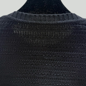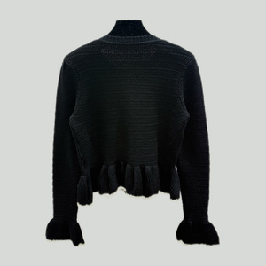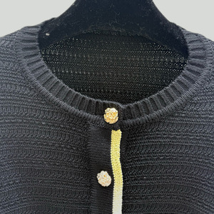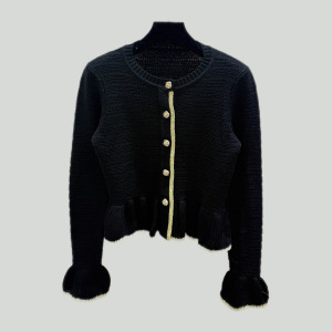 新款上市~小香风时髦不规则金属纽扣撞色拼接喇叭袖圆领针织开衫