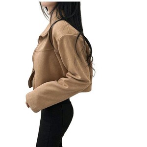 韩国chic秋季复古帅气翻领拉链式宽松百搭长袖皮绒短款夹克外套女