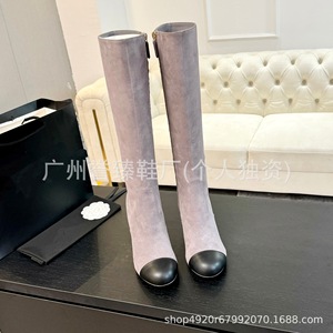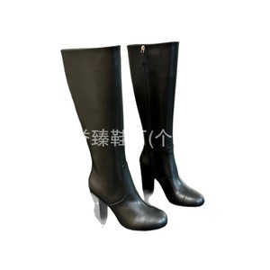 2025年秋冬新款时髦真皮圆头粗跟外穿骑士女靴