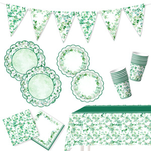 尤加利叶鼠尾草主题婴儿沐浴洗礼派对装饰餐具纸盘纸杯纸巾桌布