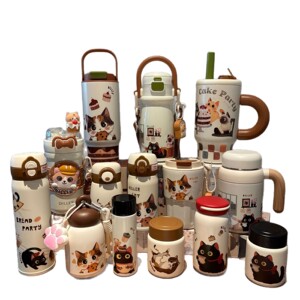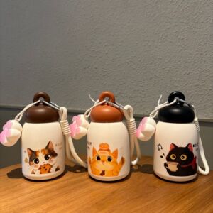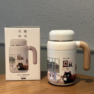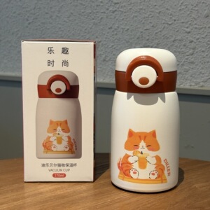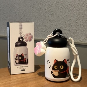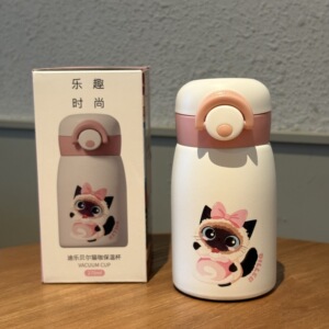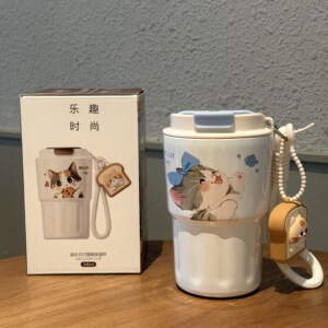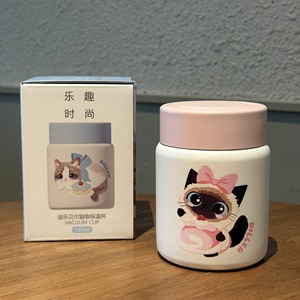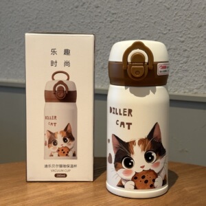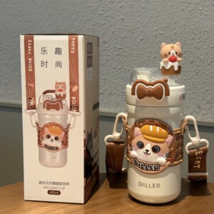 迪乐贝尔猫咖保温杯高颜值316内胆口袋小巧便携卡通吸管杯冰霸杯