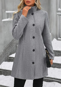 跨境欧美女装2025秋冬女士毛呢大衣时尚休闲修身翻领纯色开衫外套