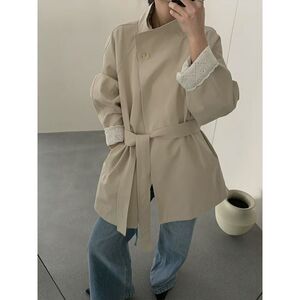 时尚立领设计蕾丝袖口个性百搭英伦风上衣韩版春秋新款风衣外套女