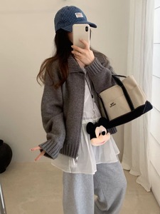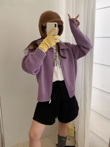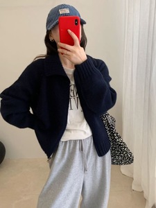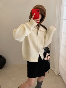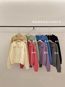 十三行2025秋冬韩国东大门复古气质毛衣百搭翻领双拉链针织开衫女