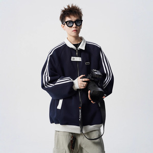 美式拼接运动夹克男秋季重磅潮牌百搭情侣外套高街痞帅条纹棒球服