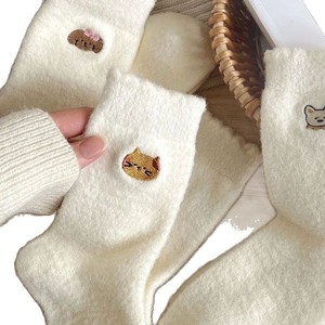 冬季澳绒中筒毛绒绒毛绒长筒袜家居保暖加厚长筒白色地板学院袜子