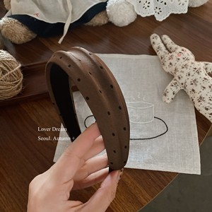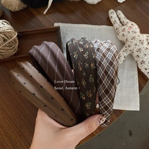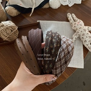 韩国秋冬新款咖色碎花格子布艺发箍 复古时尚甜美头箍高级感发饰