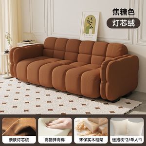 布艺沙发客厅卧室家用单双人棉花糖出租房直排沙发2025新款小户型